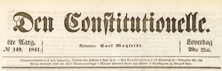 – for «Løverdag 29de Mai» – hvor det refereres fra en aktuell sak fremmet i det franske lovgivende kammer – på bakgrunn av  at en fransk jødisk handelsmann – hr. Wormser – som reisende handlende var blitt nektet opphold utover en viss varighet i hovedstaden Dresden i kongedømmet Sachsen;
