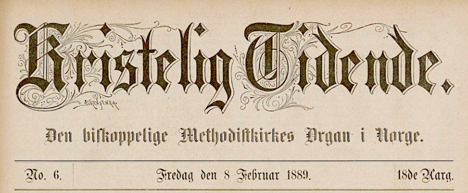 Hans Livsløb blev ei saa langt; han kaldtes bort i en forholdsvis ung Alder, kun 35 Aar gammel. Han blev født paa Ringeriket i Nærheden af Hønefos (29. januar 1854/red.) og blev omvendt til Gud, da Methodisterne begyndte sin Virksomhed der, og har siden den Tid været en nidkjær og alvorlig Kristen, der har tjent Herren med et helt Hjerte.