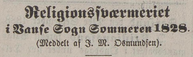– og inntatt i avisen «Lister. Et Blad for Farsund og Omegn»» for «Lørdag den 22de September 1888»; denne artikkel utgjør den første i en rekke på 4 forfattet av den kjente skolelærer og skolestyrer Johannes Matias Osmundsen – se oversikten her; Osmundsen beretter her om en særegen tid sommeren 1828 og den påfølgende perioden og med etter hans egen og mange med hams oppfatning flere negative fortegn, selv om han ikke underslår enkelte positive elementer.