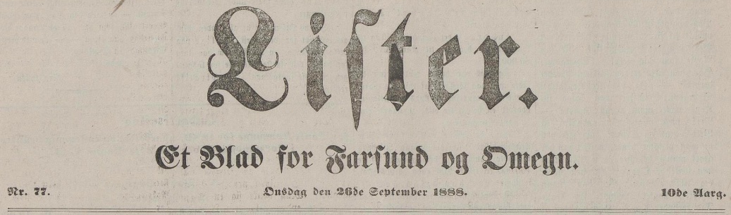 – inntatt i avisen «Lister. Et Blad for Farsund og Omegn» for «26de September 1888» – og en oppfølger av foregående artikkel (les den her) av lærer Johannes Matias Osmundsen fire dager tidligere – 22. september; disse artikler var del av en rekke på 4 – fra 22. september til 3. oktober 1888 – se oversikten her;