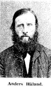 Jeg husker en gang jeg kom fra Lillehåland og skulle på møte som ble holdt hos Tori Storehåland. Da jeg kom forbi huset til Anders, hørte jeg så rar en lyd. Jeg var sen, og trodde alle hadde gått på møtet. Men da jeg sto stille en stund, kjente jeg stemmen til Adolf, sønn til Anders, som lå på kne der inne i mørket alene og tigget Gud om frelse. Han skulle ha vært på møtet, men var blitt litt sjuk, og ble derfor inne. Han var vel i 13—14 års alderen da. Da jeg kom inn i den lille stua til Tøri, var der alt fullt av folk, og jeg hørte Johan og Peder Håland sang den svenske sangen de hadde lært av Olson : «Gläd dig, gläd dig du køpta själ». Det lød så fortrøstningsfullt at det var som taket løftet seg. Herren var oss nær den kvelden, og det lagdes flere til de frelstes tall.
