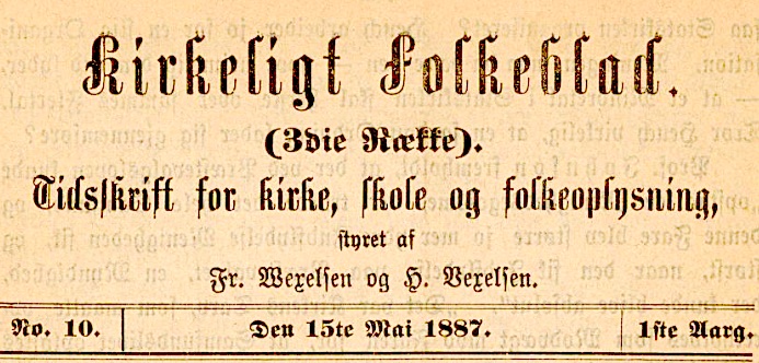 – som bodde i Jøssund sogn under Aafjord prestegjeld; denne annonsen var satt inn i bladet «Kirkeligt Folkeblad» for 15. mai 1887, dette blad som var utgitt av brødrene Wexelsen (Vexelsen). Thorstein