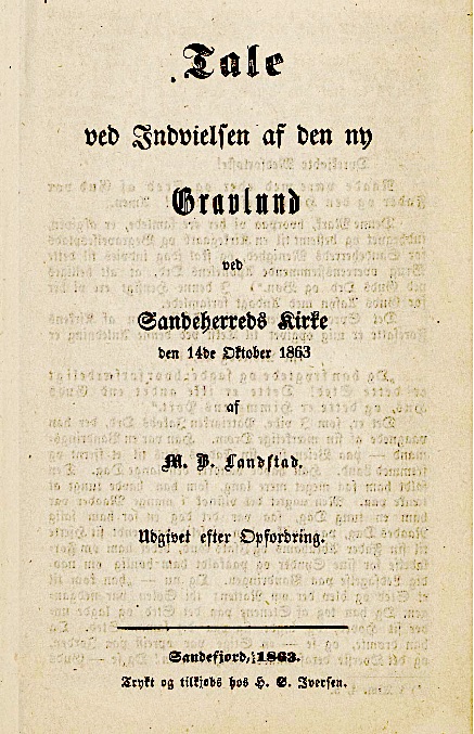 Det er et deiligt Syn, der her beskrives os, mine kjære Tilhørere ! og disse ere trøstelige Ord at ihukomme, idet vi staa her med den Tanke: her skulle I lægge vore Been til Hvile, naar vi dø ! Ja, kjære Venner ! dette Sted, hvorpaa vi staa, skal blive en Sove-Seng, en Grav for denne Menigheds Lemmer – for Eder, og, om Gud vil, ogsaa for mig, og for Slægt paa Slægt efter os. Vi staa paa vore Grave, og Gud alene veed, hvor snart vi kunne ligge deri og vort jordiske Løb være til Ende.