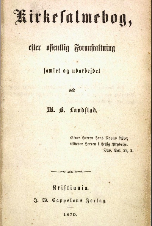 – står som nr. 396 i «Kirkesalmebog, efter offentlig Foranstaltning samlet og udarbejdet ved M.B. Landstad»; Kristiania 1870;