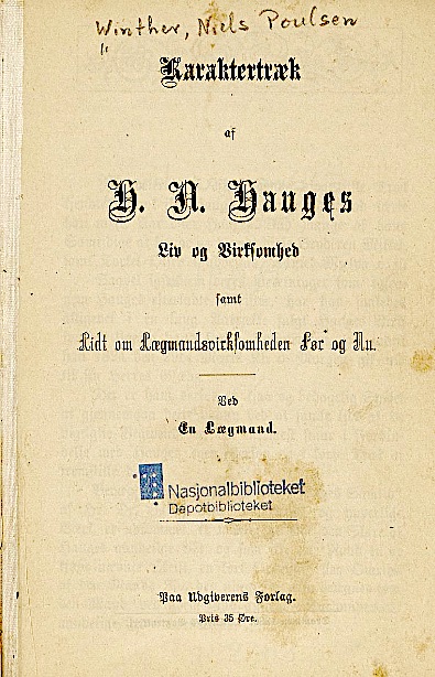 Efter at foranstaaende «Karaktertræk af Hauges Liv og Virksomhed» var baade skrevet og trykt, kom Udgiveren over en gammel Bog, hvori en lignende Forfølgelse, som den, der fandt Sted med Hauge, omtrent 60 Aar tidligere sees at have fundet Sted med en dansk Student.