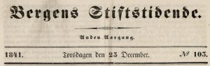 – i utgaven av 23. desember 1841 – etter at første del-artikkel var kommet i forrige utgave av «Bergens Stiftstidende» No. 102 for «Søndagen den 19 December».
