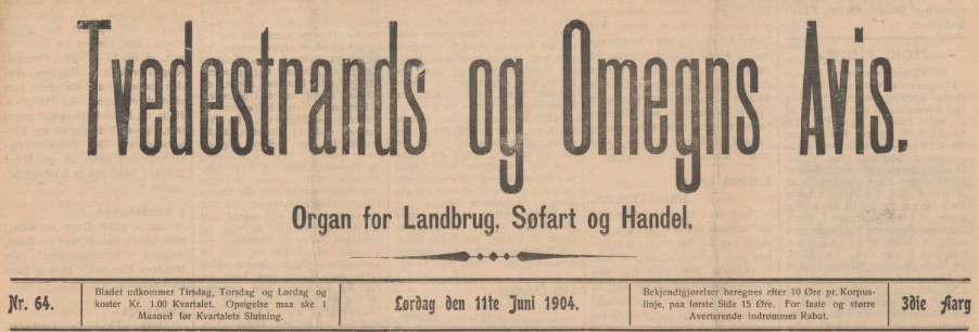 – beretningen om hvordan han som kun 16-åring konkurrerte om posten som almueskolelærer i Ravneheien krets i Vanse sogn; dette stod på trykk i avisen «Tvedestrand og Omegns Avis» for lørdagen 11. juni 1904, få dager etter hans bortgang i Farsund 4. juni.