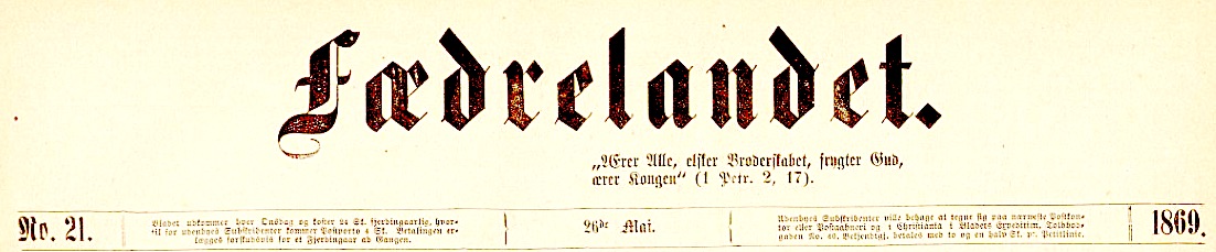 «fædrelandet»s endrede redaksjon fra våren 1869 : i artikkel 26de mai