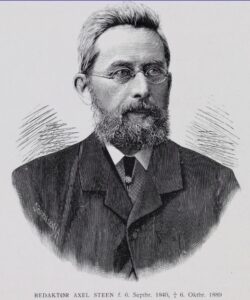 – i avisen «Verdens Gang» for «Mandag 7. Oktober 1889»; den kjente og avholdte avis-utgiver Aksel Andreas Steen i Kristianssand gikk bort bare 49 år gammel; les den unge Erik Vullums fine minneord etter/beskrivelse av Steen her :